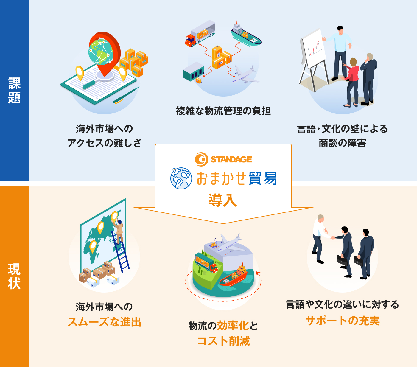 株式会社STANDAGEが提供する「おまかせ貿易」は、輸出と販路拡大・販路開拓など、煩雑な貿易業務をワンストップで支援してくれるサービスです。